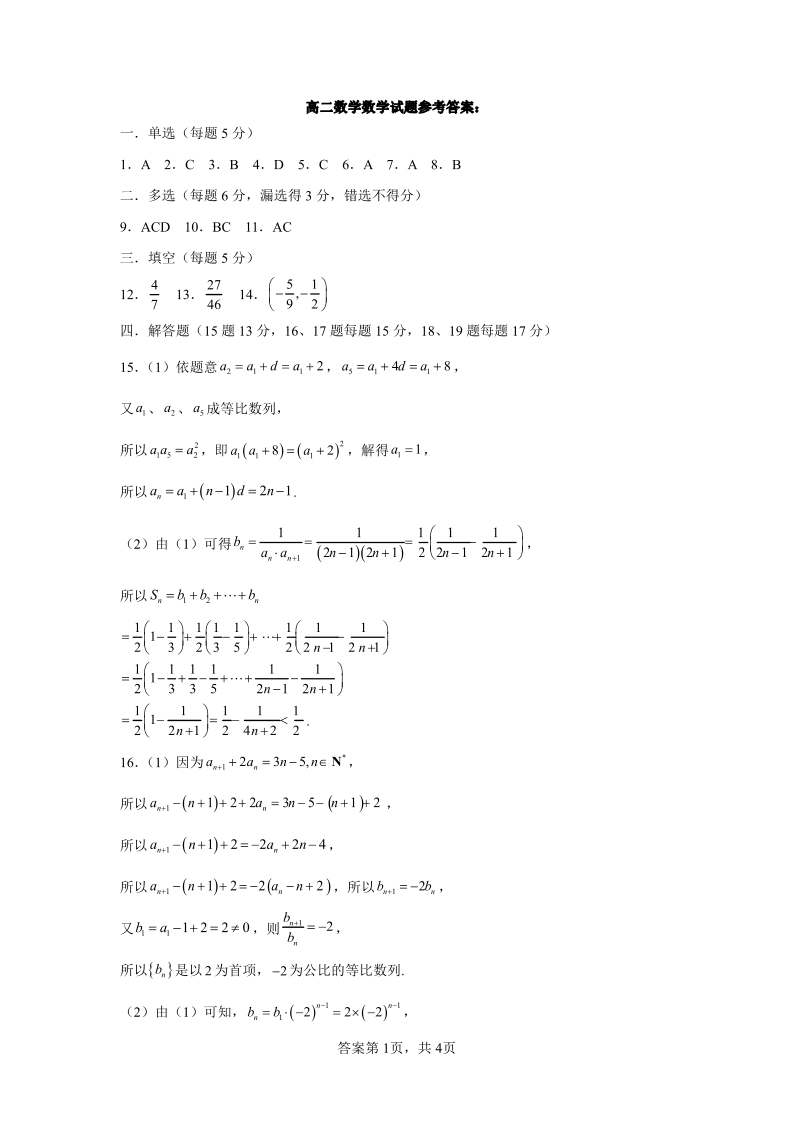 黑龙江省大庆市大庆中学2023-2024学年高二下学期4月月考数学答案