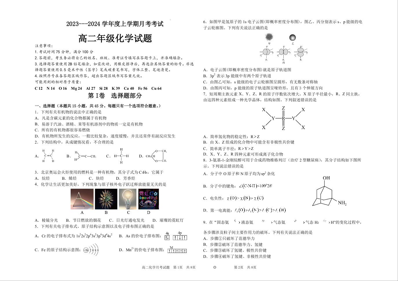 黑龙江省大庆市大庆中学2023-2024学年高二下学期4月月考化学