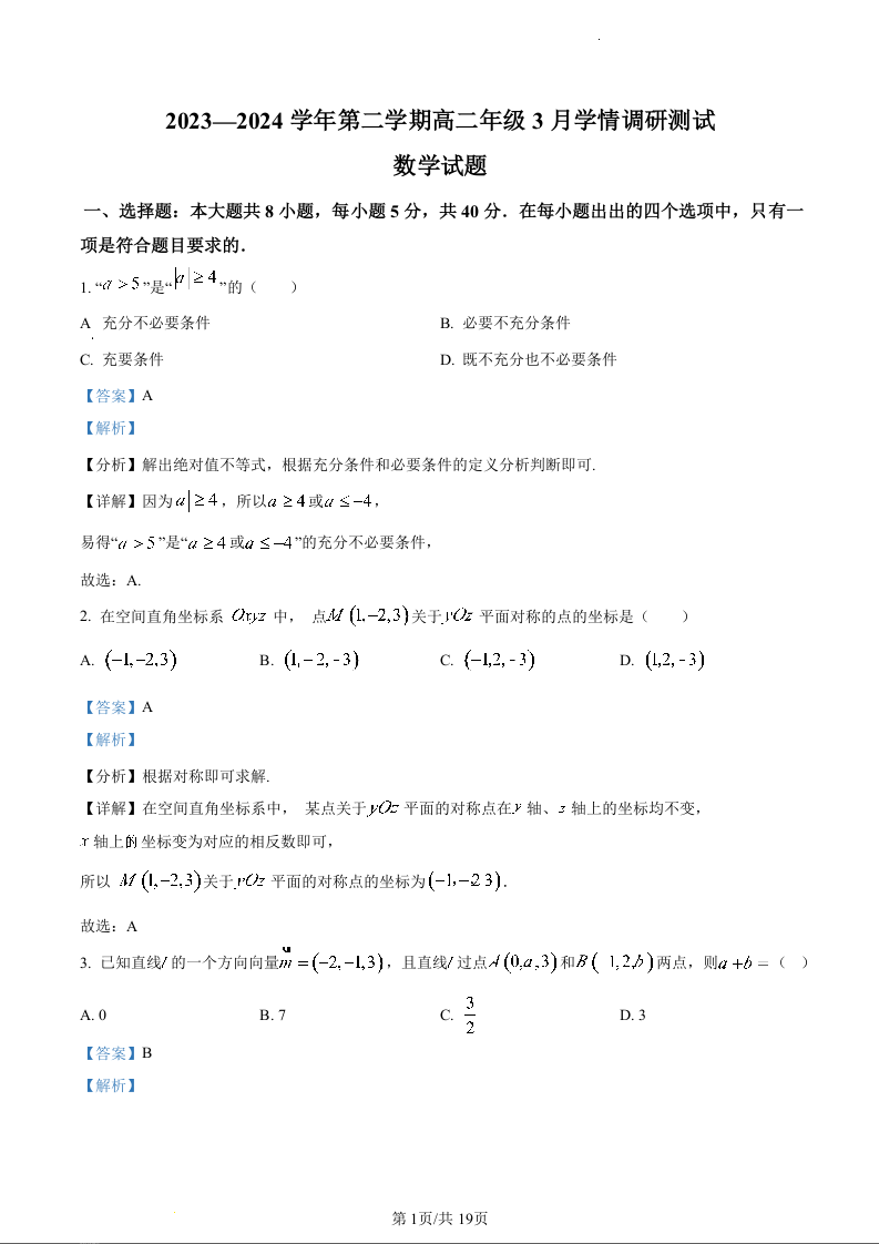 江苏省扬州市高邮市2023-2024学年高二下学期3月月考数学(精品解析版)