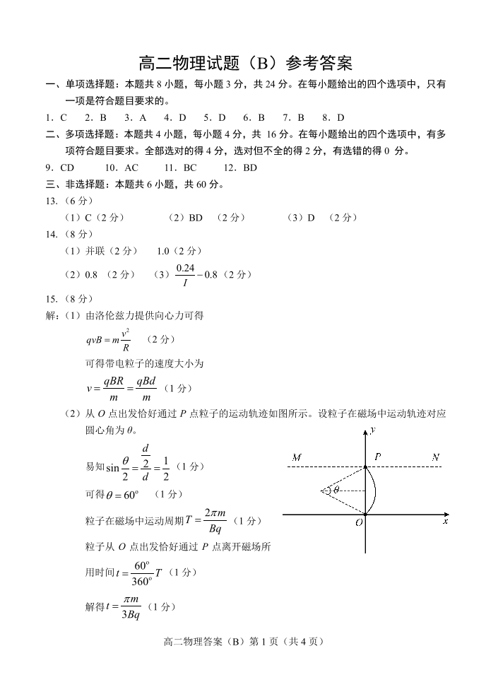 山东省菏泽市2023-2024学年高二下学期期中考试物理答案