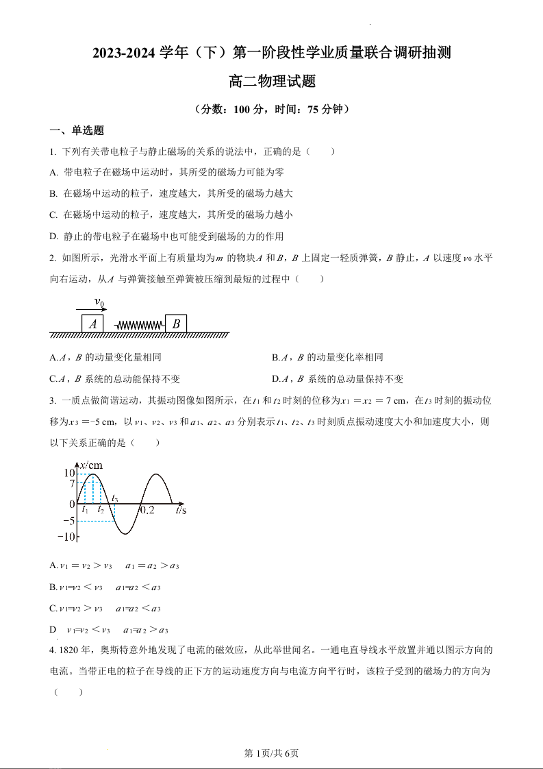 重庆市乌江新高考协作体2023-2024学年高二下学期4月月考物理(原卷版)