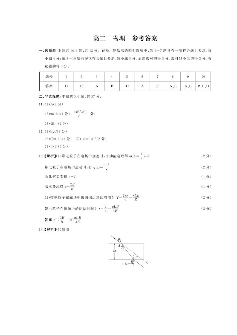 甘肃省天水市2023-2024学年高二下学期5月期中考试物理答案