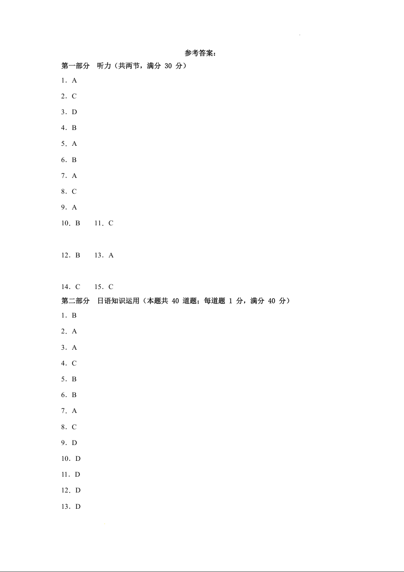 广东省珠海市六校2023-2024学年高二下学期期中联考日语答案