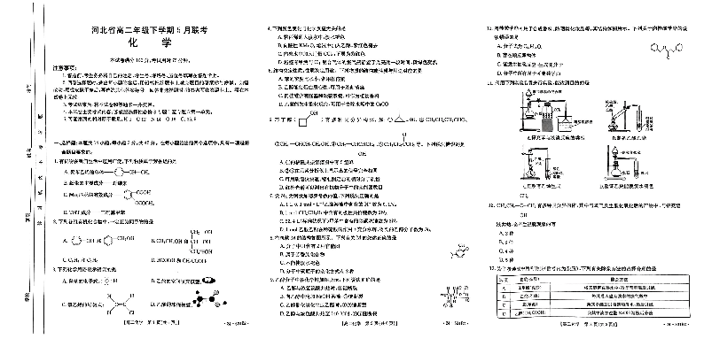 河北省保定市部分示范性高中2023-2024学年高二下学期5月期中考试化学