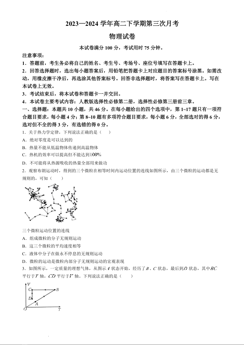 河南省创新发展联盟2023-2024学年高二下学期5月月考物理+答案