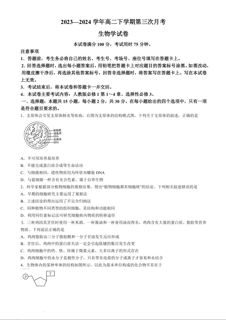 河南省创新发展联盟2023-2024学年高二下学期5月月考生物+答案