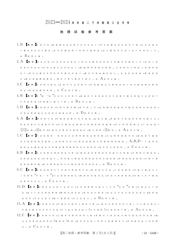 河南省创新发展联盟2023-2024学年高二下学期5月月考地理答案