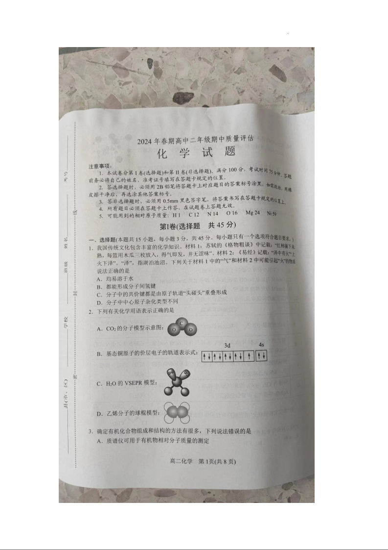 河南省南阳市2023-2024学年高二下学期期中考试化学