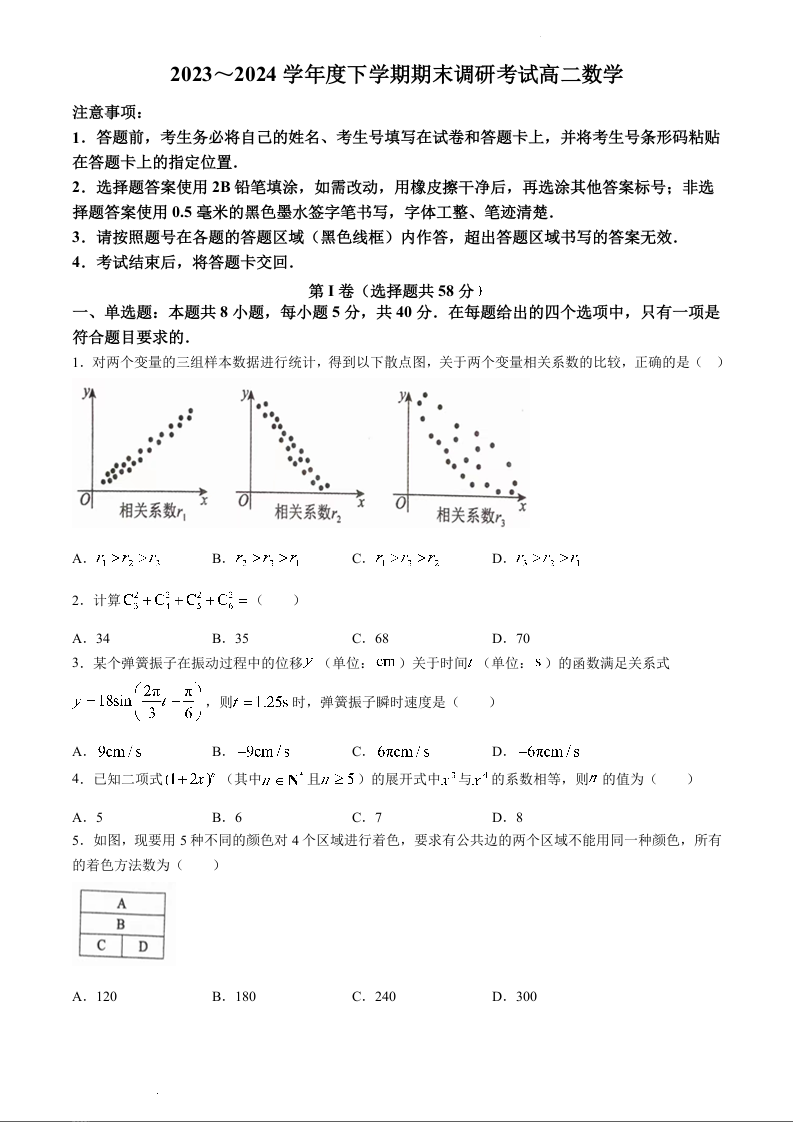 河南省三门峡市2023-2024学年高二下学期5月期末质量检测数学+答案
