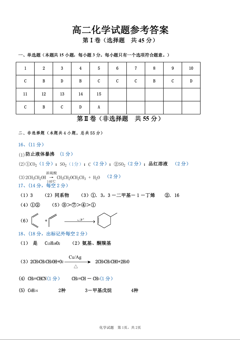 黑龙江省大庆市大庆中学2023-2024学年高二下学期5月期中考试化学答案