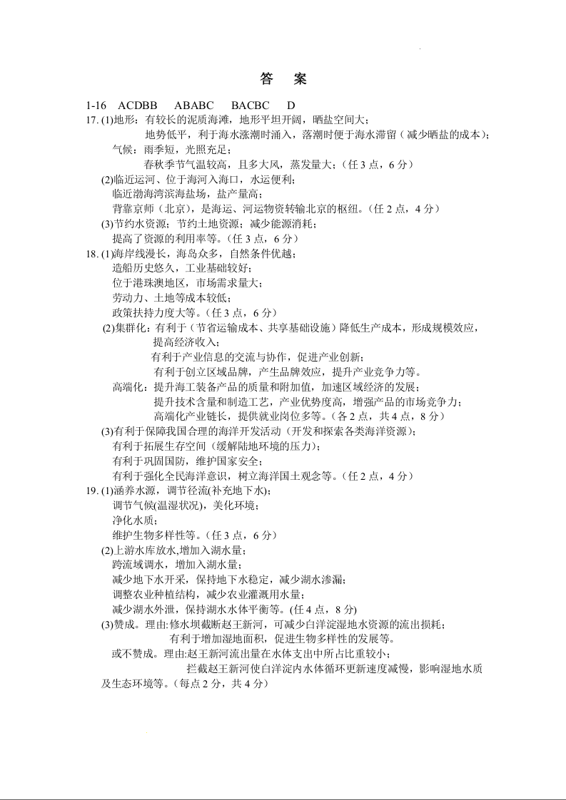 黑龙江省大庆市大庆中学2023-2024学年高二下学期5月期中考试地理答案