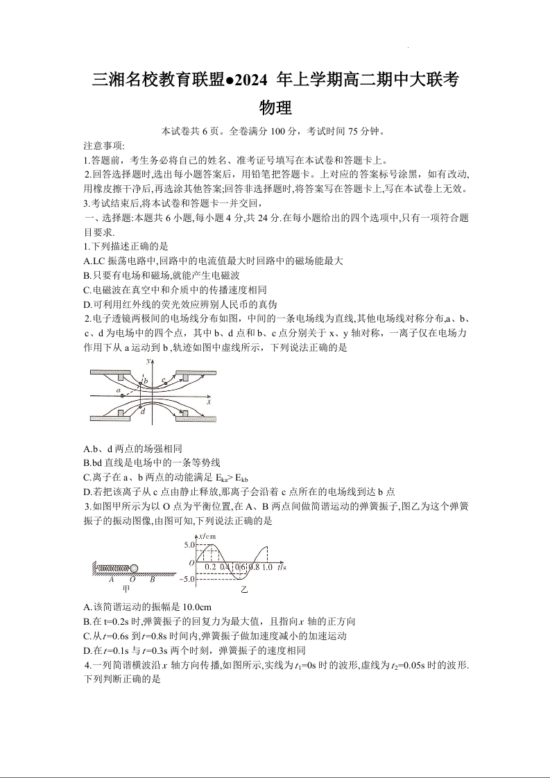 湖南省三湘名校教育联盟2023-2024学年高二下学期期中考试物理