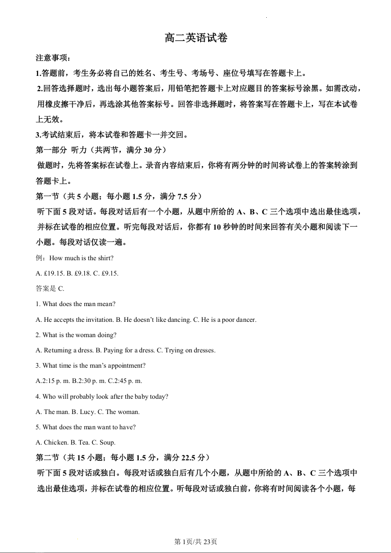 吉林省BEST合作体”2023-2024学年高二下学期5月期中考试英语(精品解析版)