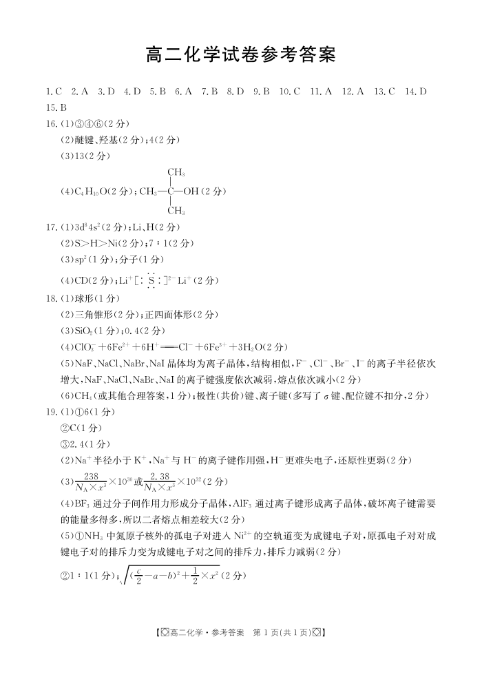 吉林省BEST合作体”2023-2024学年高二下学期5月期中考试化学答案