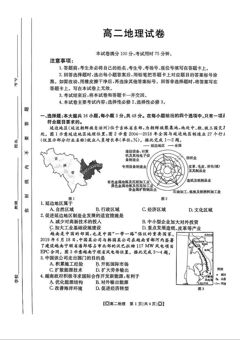 吉林省BEST合作体”2023-2024学年高二下学期5月期中考试地理