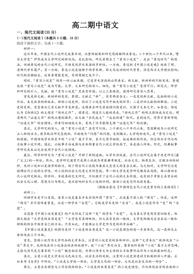 吉林省梅河口市第五中学2023-2024学年高二下学期5月期中考试语文+答案
