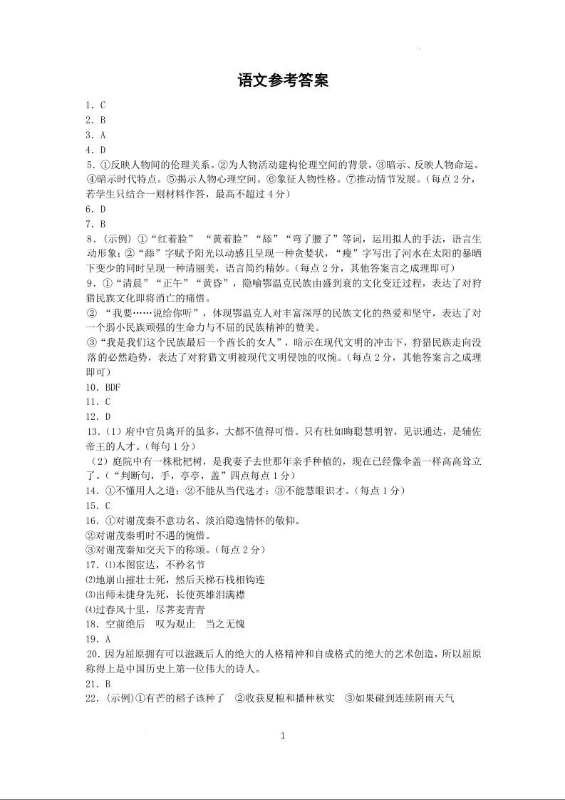 江苏省南京市六校联合体2023-2024学年高二下学期5月月考语文答案