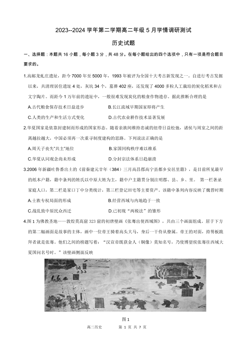 江苏省扬州市高邮市2023-2024学年高二下学期5月月考历史
