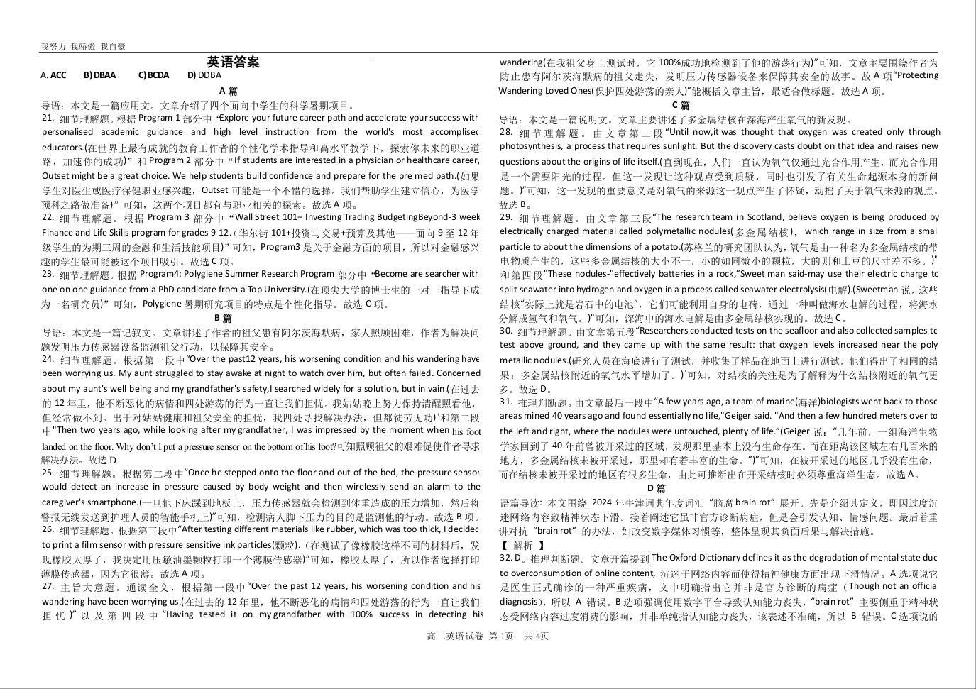河南省驻马店市重点高中2025届高三下期第三次考试英语答案