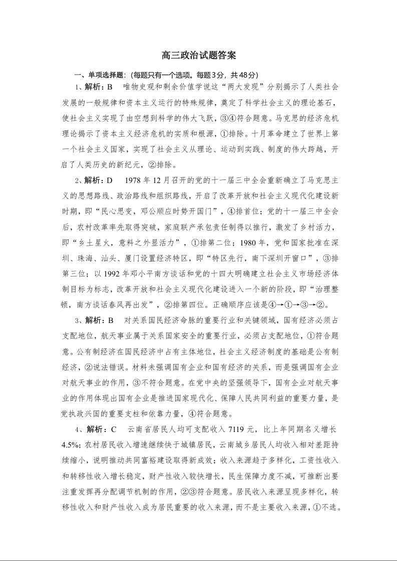 湖北省部分高中协作体2025届高三下学期3月一模联考政治答案