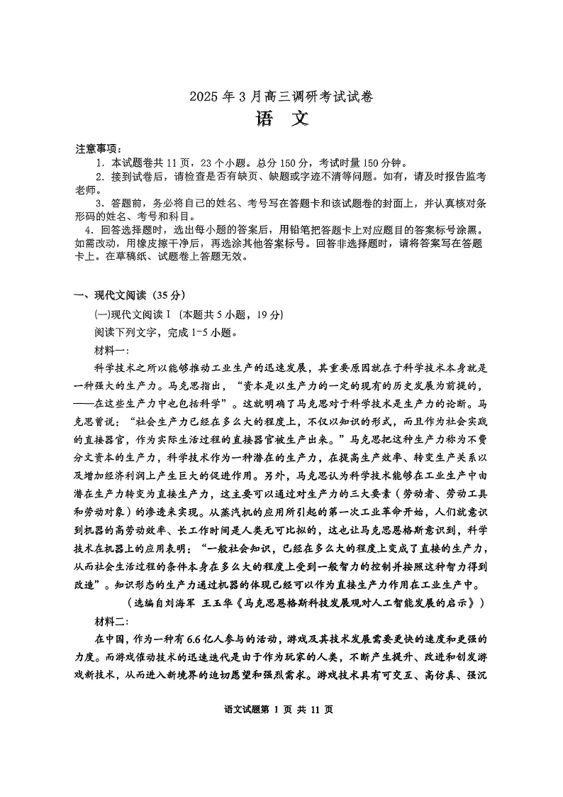 湖南省“长望浏宁”四县联考2025届高三下学期3月调研考试语文+答案
