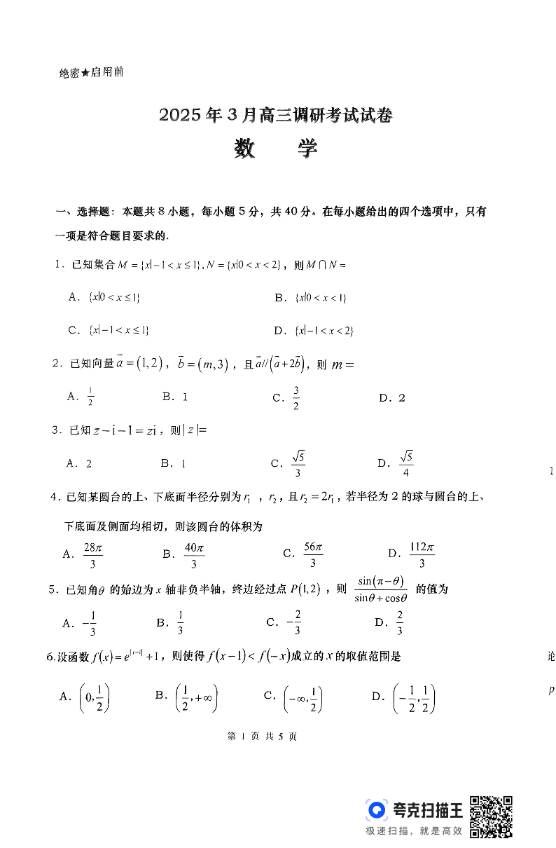 湖南省“长望浏宁”四县联考2025届高三下学期3月调研考试数学