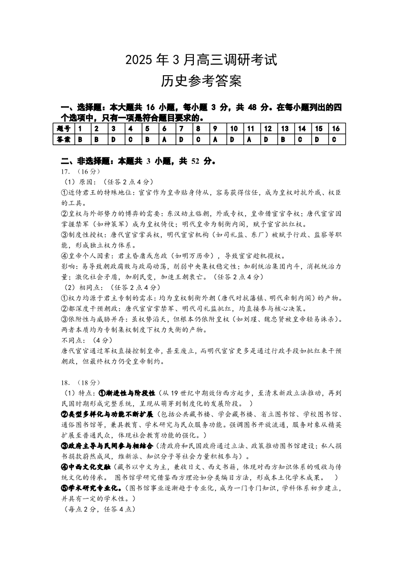 湖南省“长望浏宁”四县联考2025届高三下学期3月调研考试历史答案