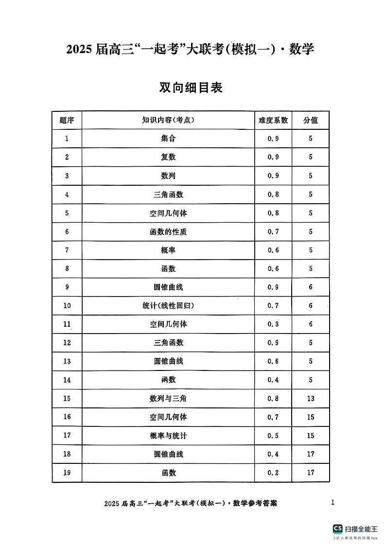 湖南省2025届高三下学期“一起考”大联考(一模)数学答案