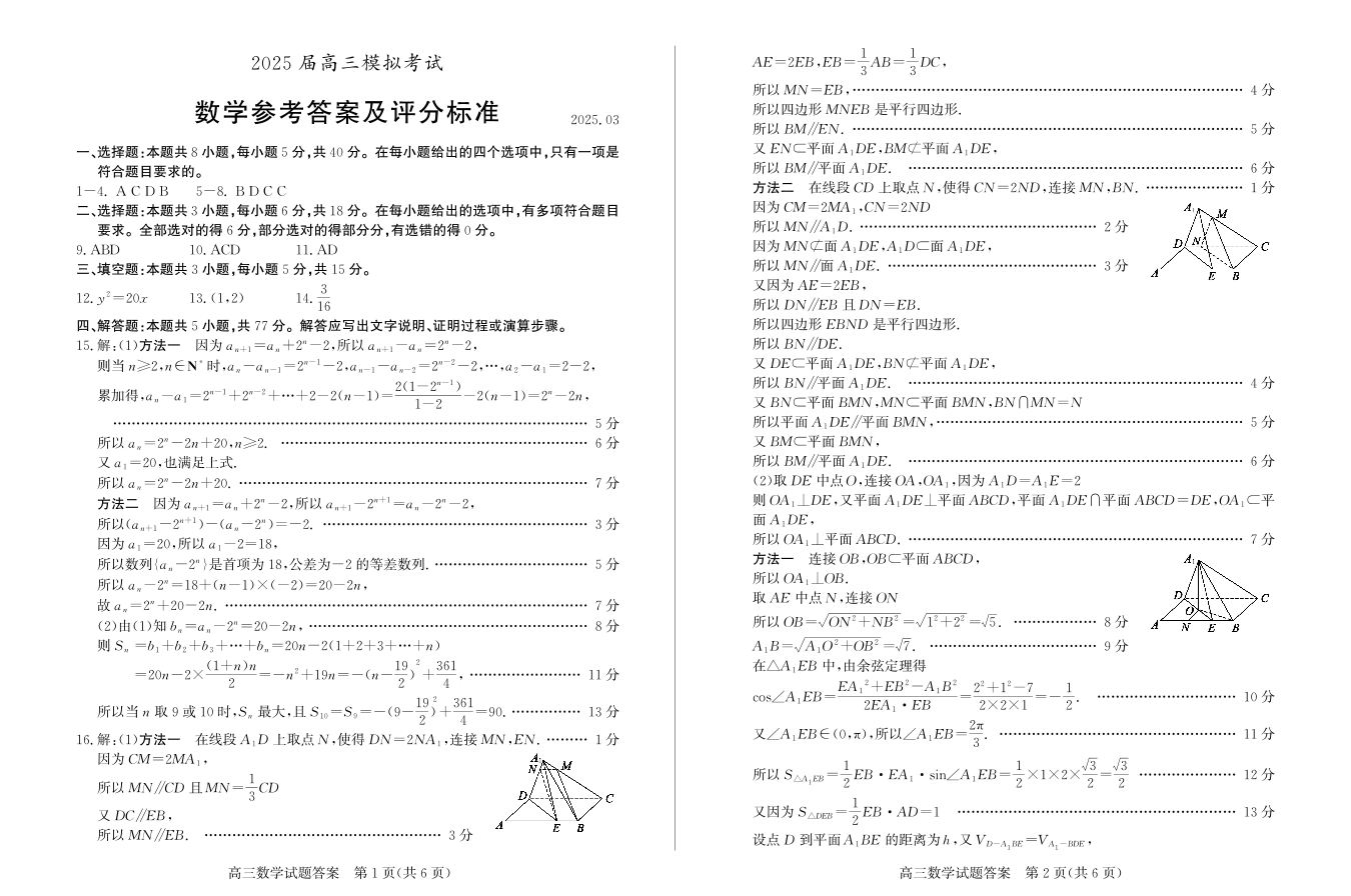 山东省枣庄市2025届高三模拟考试(枣庄二调)数学答案