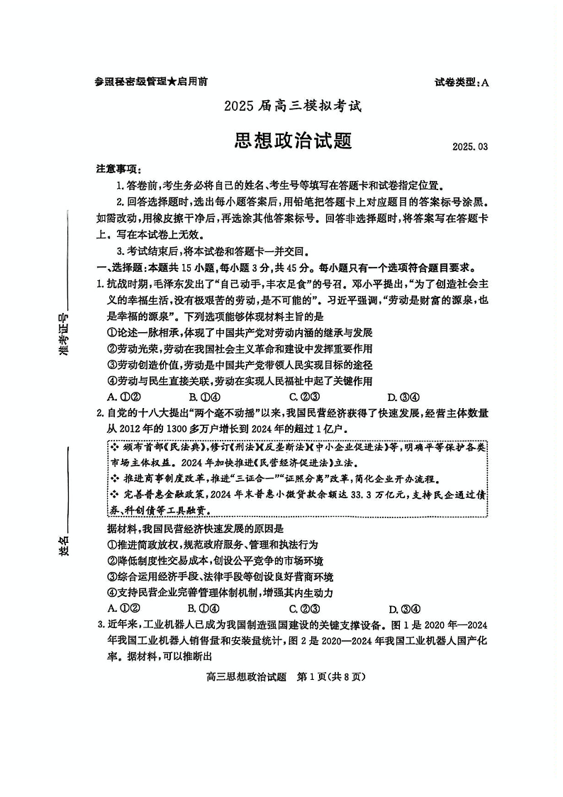山东省枣庄市2025届高三模拟考试(枣庄二调)政治+答案