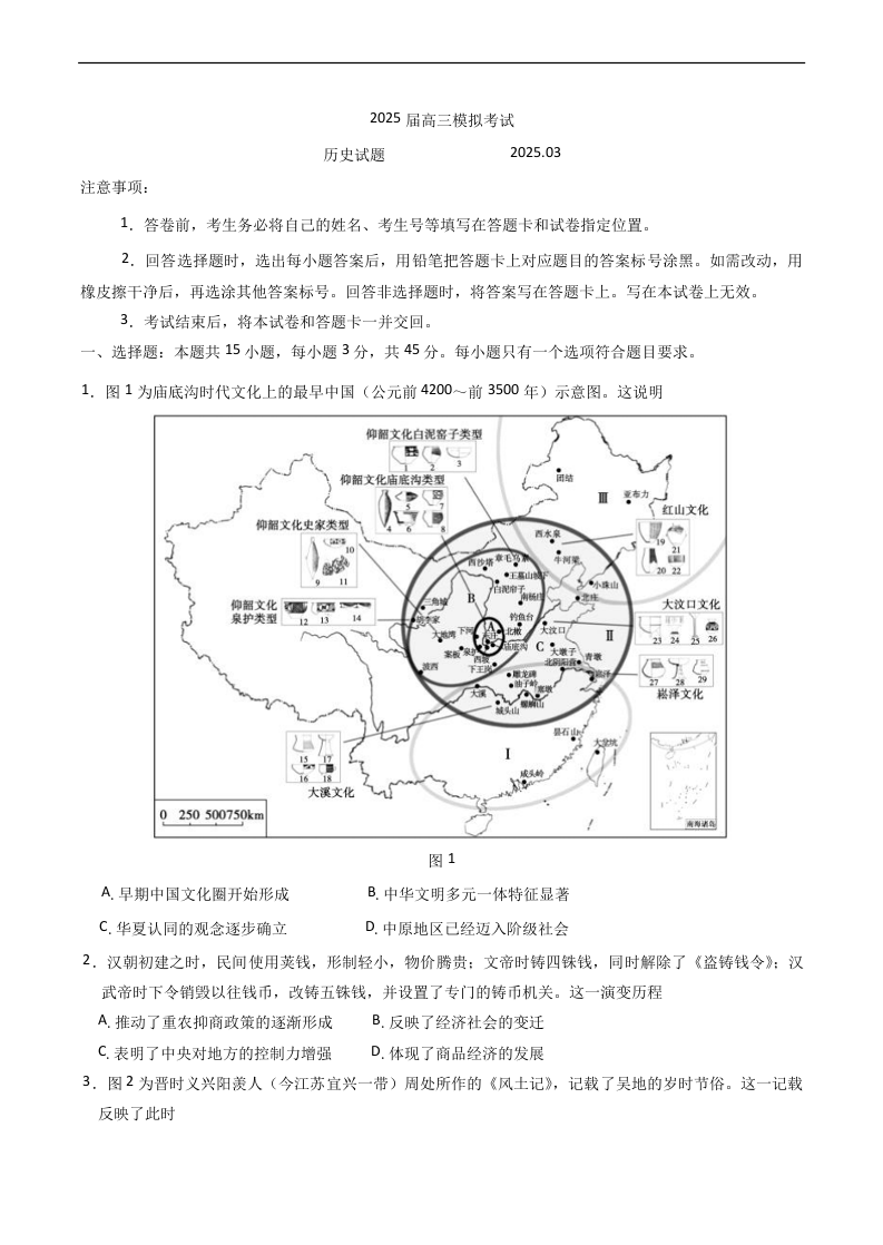 山东省枣庄市2025届高三模拟考试(枣庄二调)历史+答案