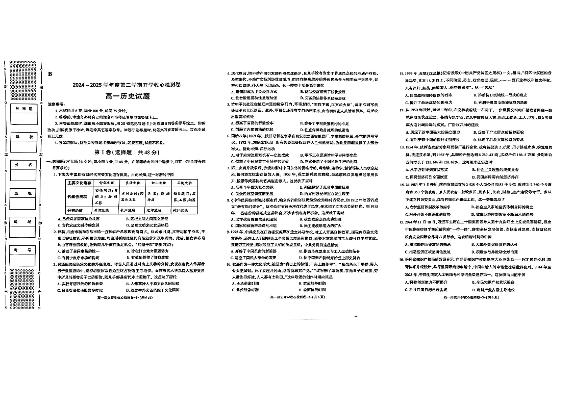陕西省咸阳市2024-2025学年下学期高一开学考试历史+答案