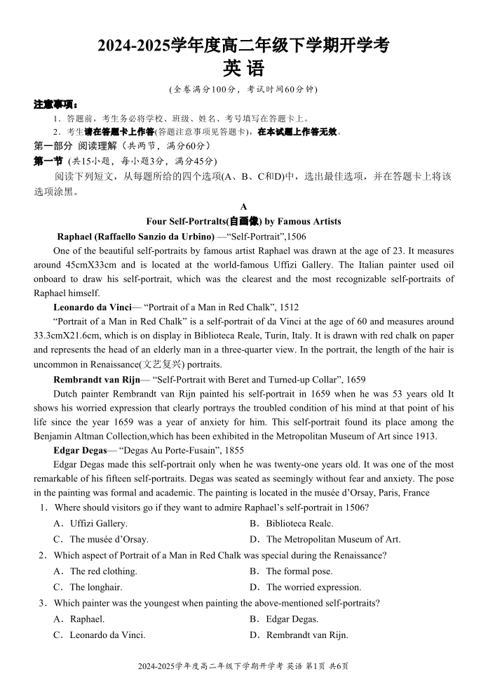 广西梧州市2024-2025学年下学期高二开学考试英语+答案
