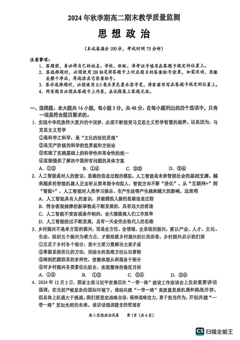 广西壮族自治区玉林市2024-2025学年上学期1月高二期末检测政治