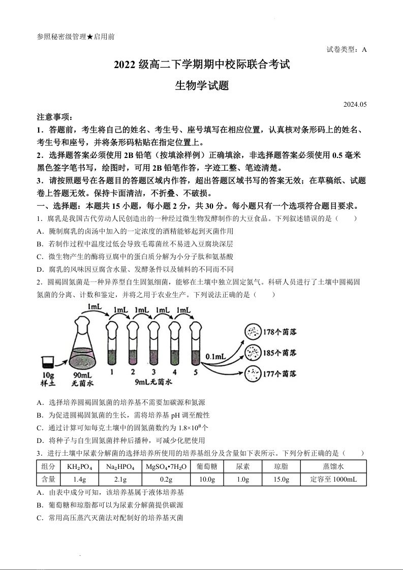 山东省日照市2023-2024学年高二下学期期中考试生物+答案