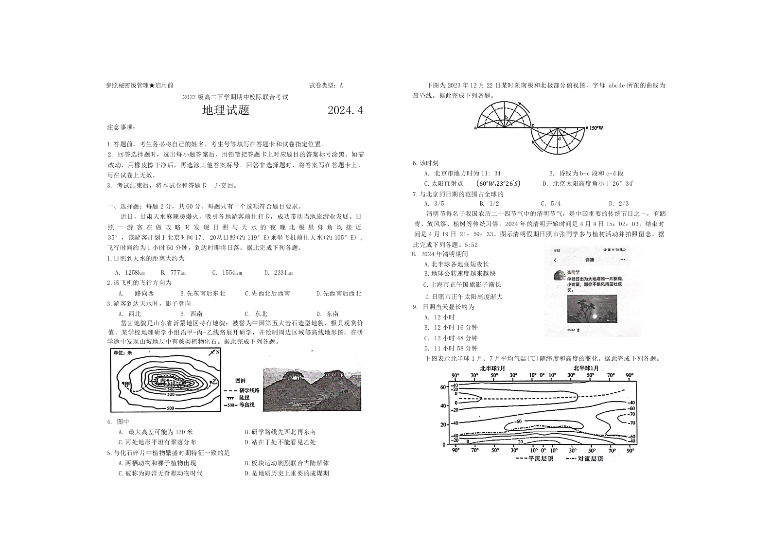 山东省日照市2023-2024学年高二下学期期中考试地理