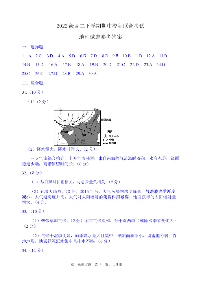 山东省日照市2023-2024学年高二下学期期中考试地理答案
