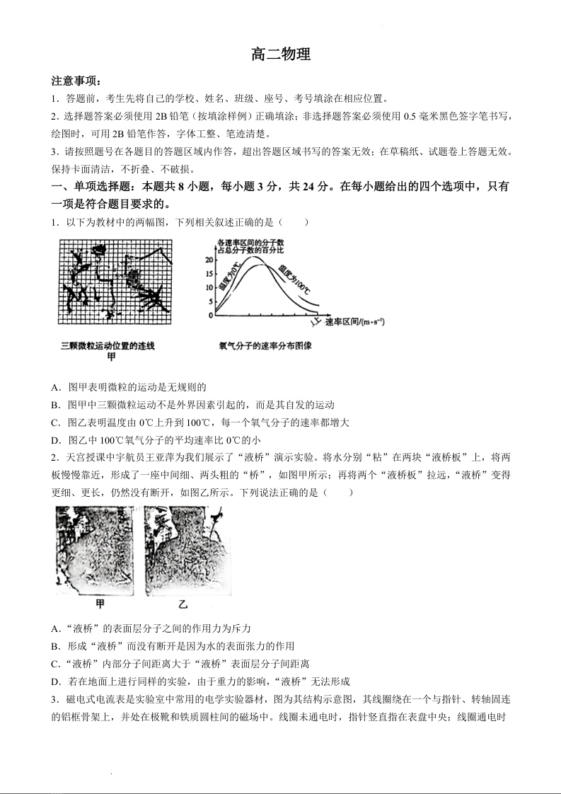 山东省潍坊市2023-2024学年高二下学期期中考试物理+答案