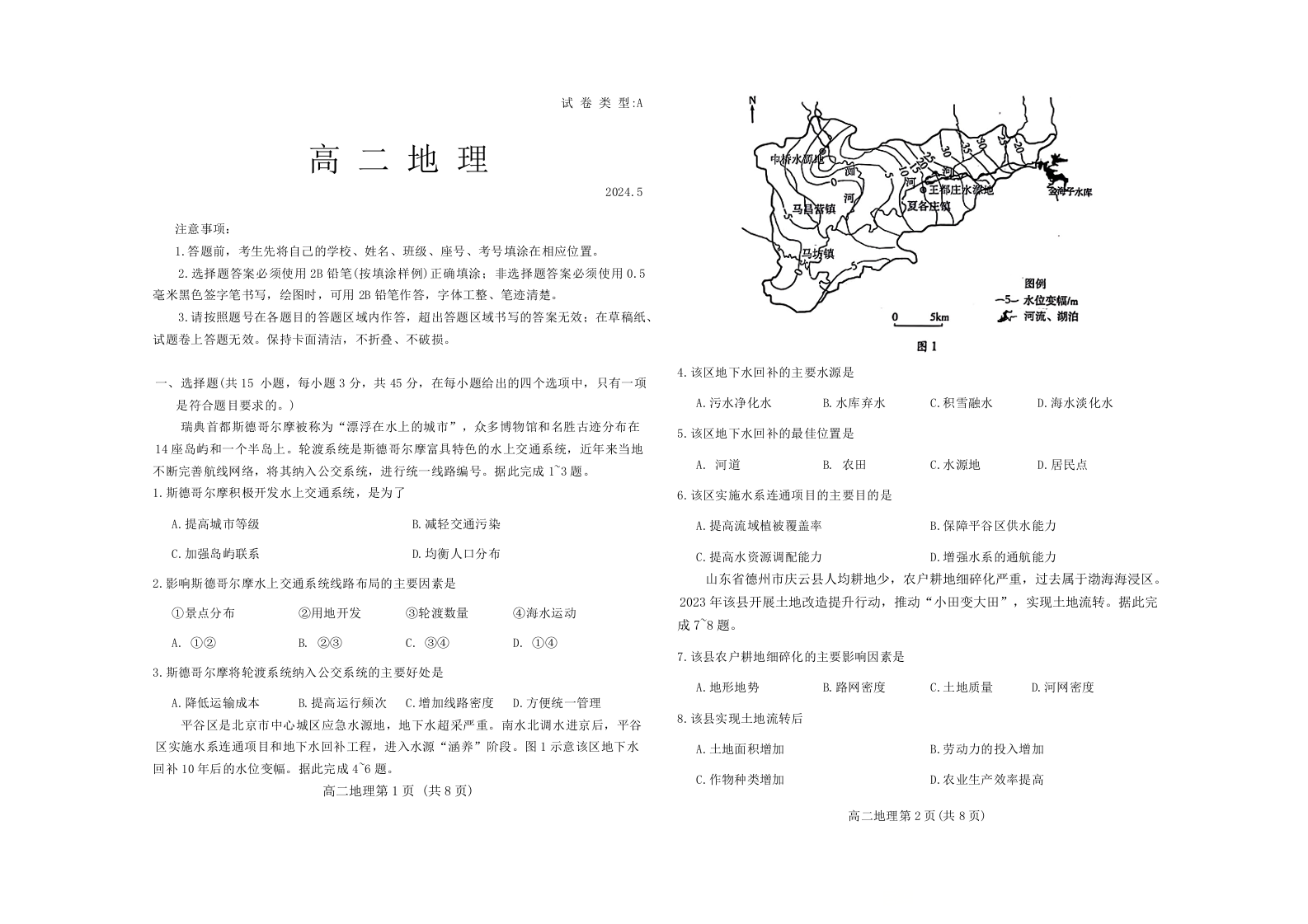 山东省潍坊市2023-2024学年高二下学期期中考试地理