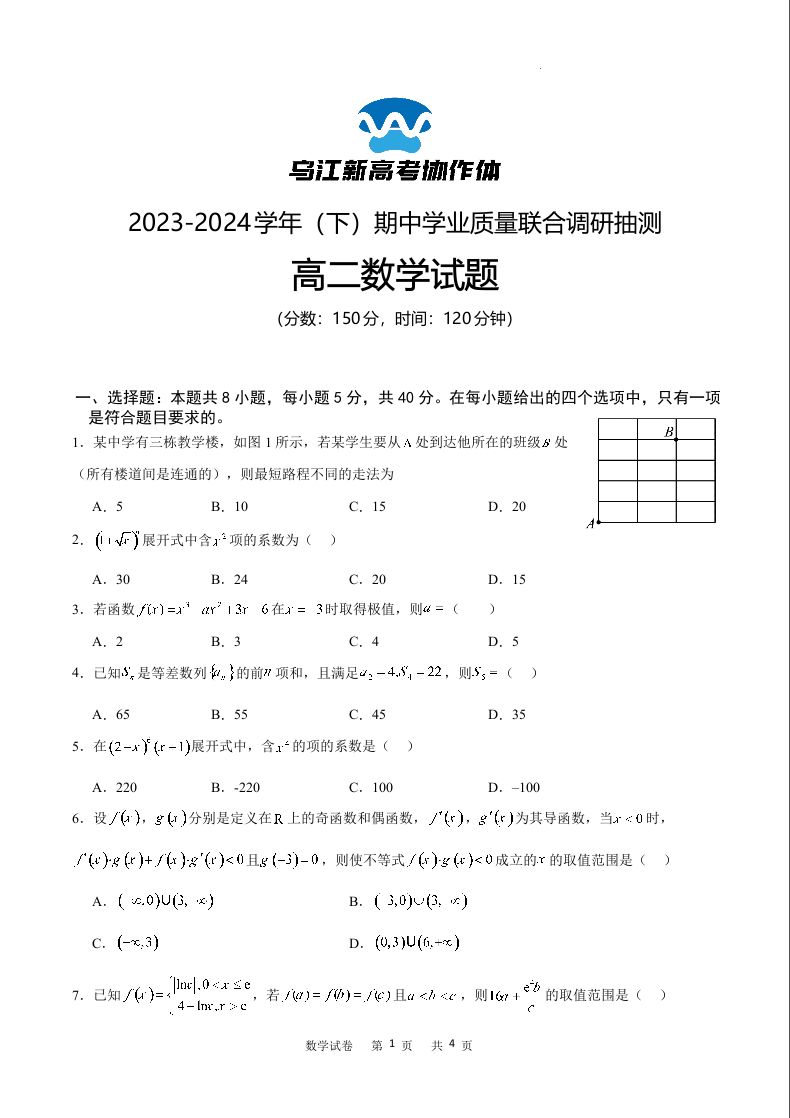 重庆市乌江新高考协作体2023-2024学年高二下学期5月期中考试数学
