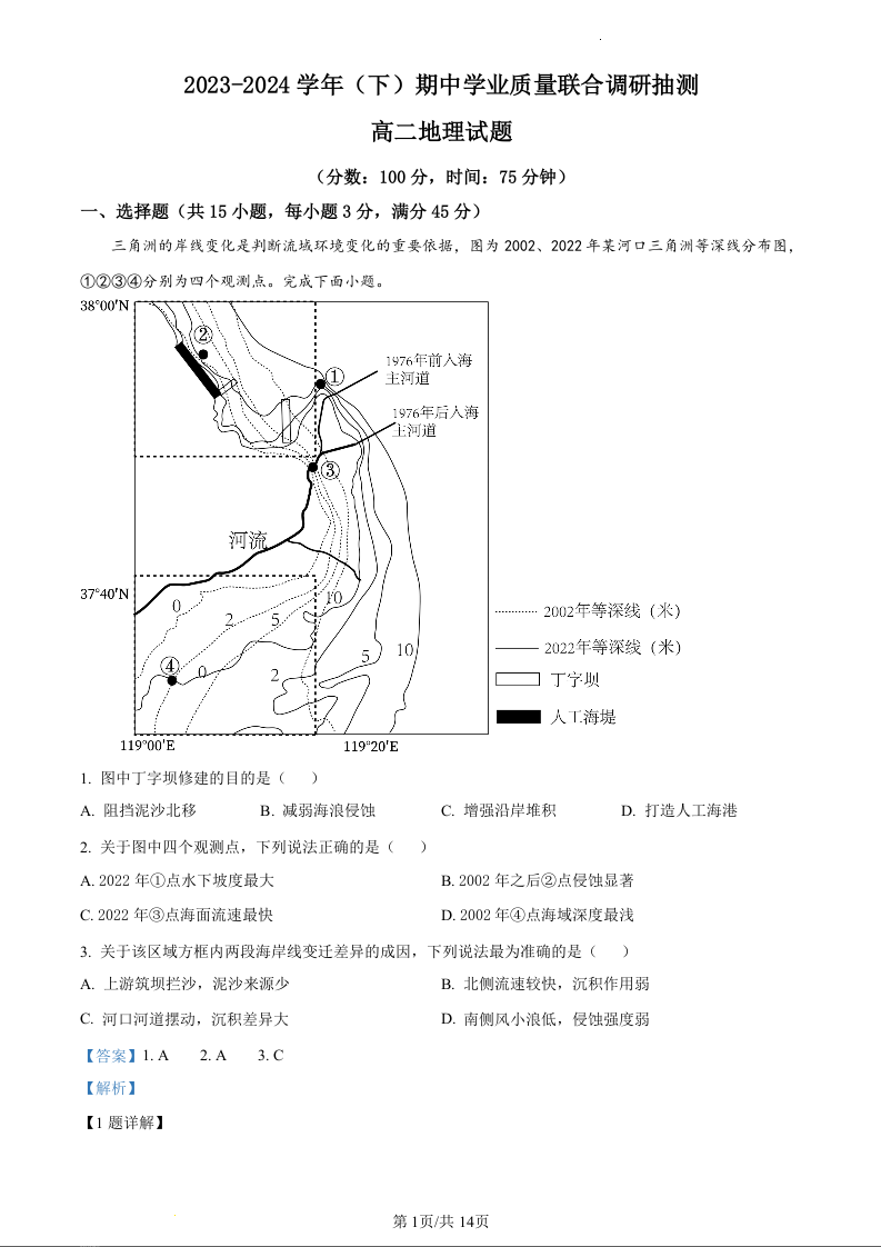 重庆市乌江新高考协作体2023-2024学年高二下学期5月期中考试地理(精品解析版)