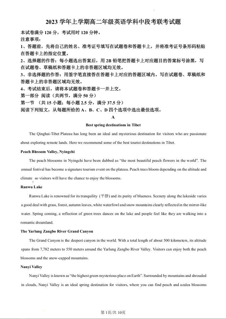 广东省广州市七校2023-2024学年高二上学期期中联考英语(原卷版)