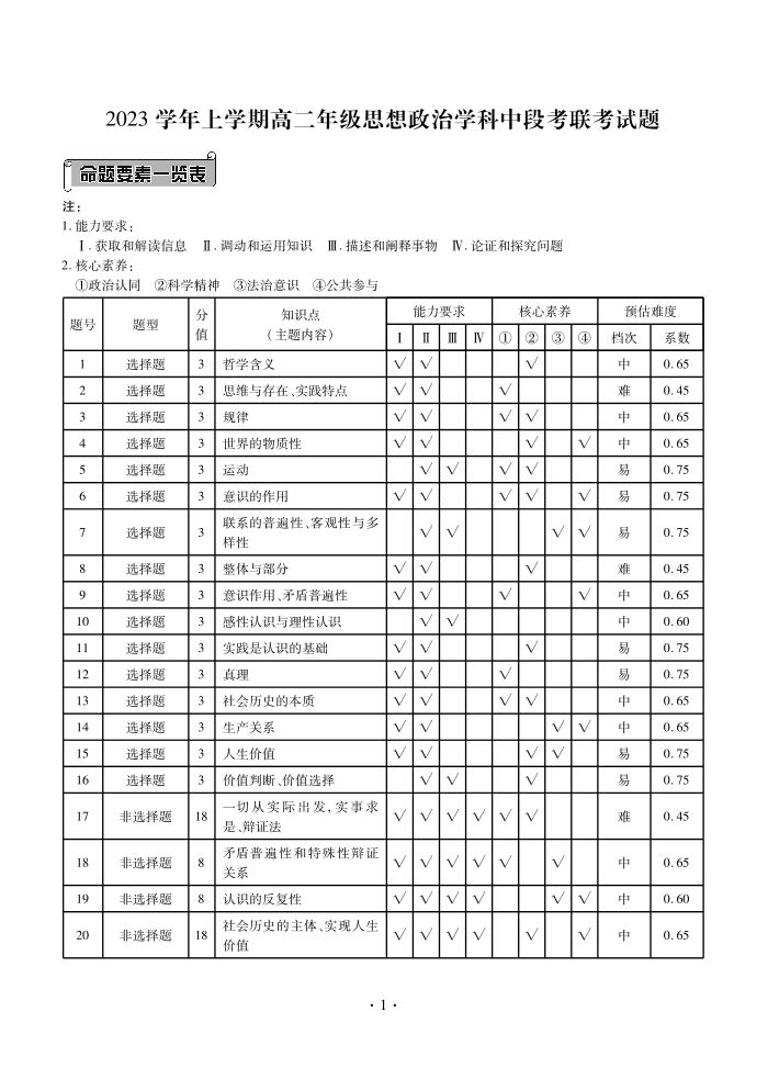 广东省广州市七校2023-2024学年高二上学期期中联考政治答案