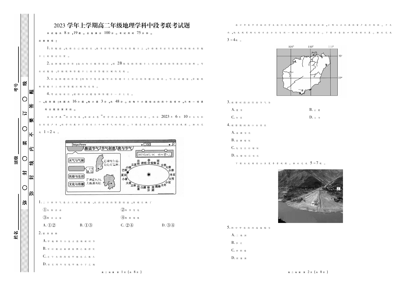 广东省广州市七校2023-2024学年高二上学期期中联考地理