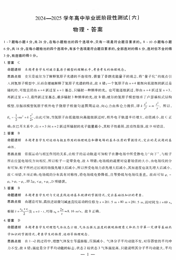 河南省区域高中2024-2025学年下学期高三阶段性测试(六)物理答案