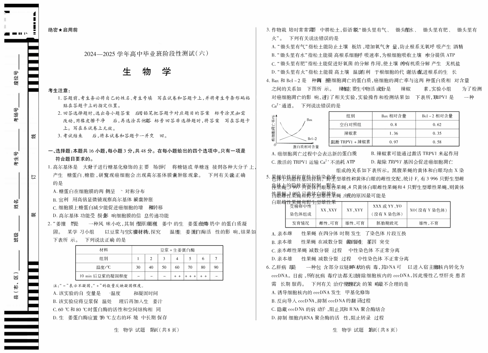 河南省区域高中2024-2025学年下学期高三阶段性测试(六)生物