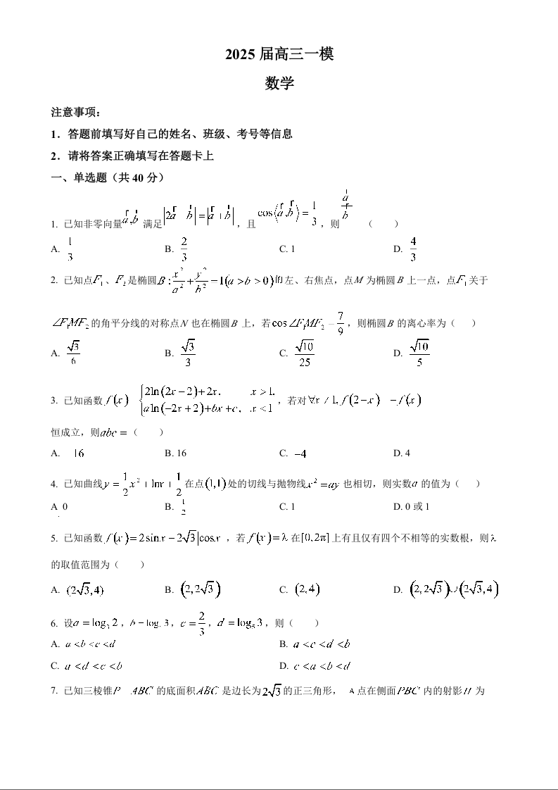 湖南省长沙市地质中学2024-2025学年下学期高三一模(原卷版)
