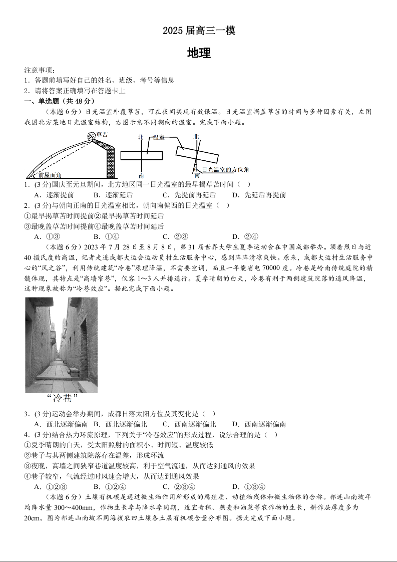 湖南省长沙市地质中学2024-2025学年下学期高三一模地理