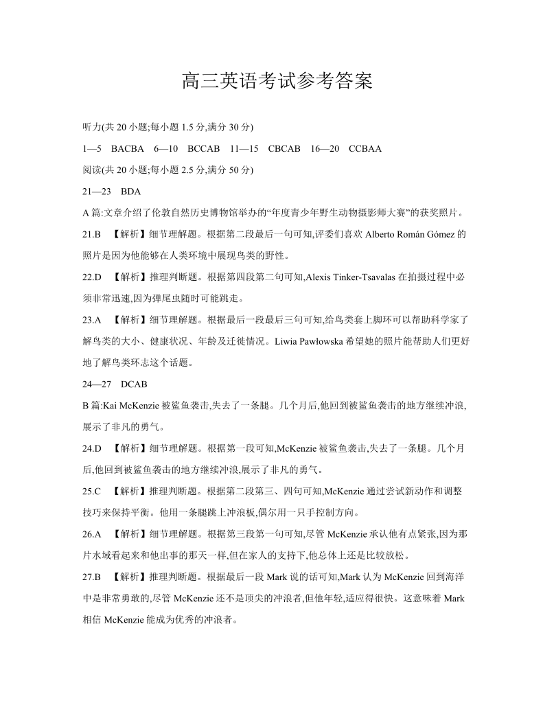 江西省区域高中2024-2025学年下学期3月高三联考英语答案