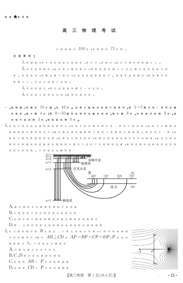 江西省区域高中2024-2025学年下学期3月高三联考物理